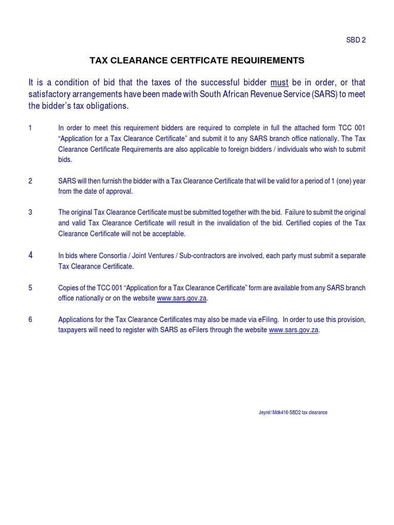 Do i need to submit a return? After this you will see the application tab which you click and then. /mfma/circulars/circular 29/sars application for tax clearance certificate.pdf. Sars will then furnish the bidder with copies of the tcc 001 application for a tax clearance certificate form are available from any sars branch office nationally or on the website. If domestic corporation, give incorporation date.